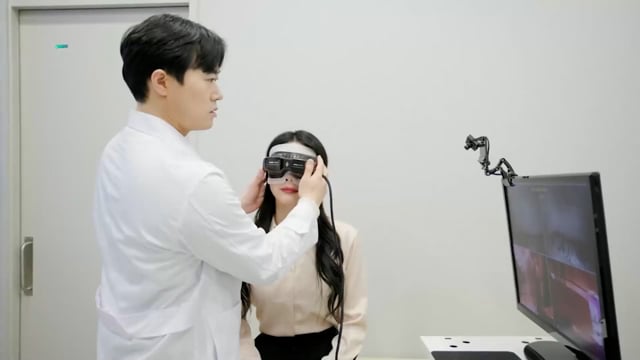 자극에 의해 생기는 안구의 움직임을 이용하여 어지러움의 원인이 말초성인지, 중추성인지를 감별하여 치료를 할 수 있게 하는 장비입니다.